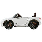 Step on the accelerator and the twin 50W motor gives the ride a simply exhilarating send-off. The four-wheel suspension and anti-flat design tyres ensure the ride absorbs all impacts for a stable cruise along grass, concrete or any coarse surface. Together with the wide sport seat, seat belt and an adult remote override control, the unique soft speed system also adds to the safety-first motto of this fun Kids Ride On Car.