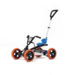 The BERG Buzzy Nitro 2-in-1 Pedal Kart is an effective and economical alternative to conventional trikes. It can be used as a push car or a pedal kart with utmost ease. The kart features four wheels for extra stability on those sharp turns kids love to take. The kart features a steering lock which when engaged allows the adult to take control of the movement. The push bar in the rear can be adjusted or dismounted in a jiffy when needed. The kart is equipped with a freewheel which prevents the pedals from turning while it is being pushed around.