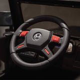 Providing your child with a realistic driving experience, this beauty also includes a foot pedal accelerator, working front lights, Built-in MP3 player, a horn (beep-beep!), bullbar and side-steps for easy access.