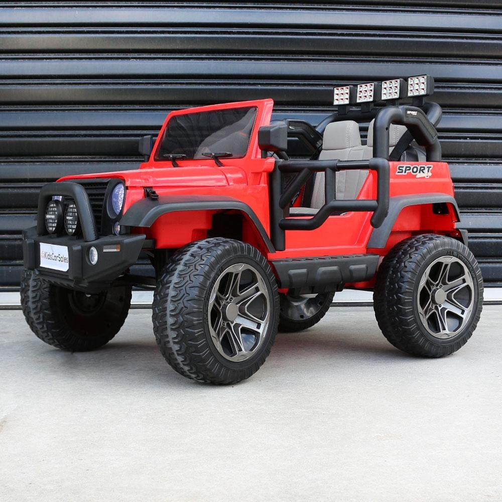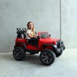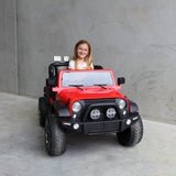Grab the sunnies and get outside with the kid-sized Jeep inspired ride on kids car. Complete with big high-grip rubber tyres, upgraded drive motors and a bigger battery, this 12v ride on is ready to navigate any rugged backyard terrain!
