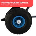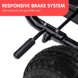 The G18 is equipped with treaded rubber tyres that offer a smooth ride on various surfaces. Its responsive brake system and directional steering wheel ensure precise control and safety during use.