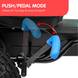 Additionally, the push/pedal system allows for easy switching to manual pushing, providing versatility for different scenarios.