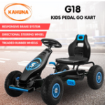 Give your child the ultimate outdoor adventure with the Kahuna G18 Kids Ride On Pedal Powered Go Kart Racing Style – Blue. This go-kart features a robust frame and modern design, complete with eye-catching racing decals, providing both style and durability.