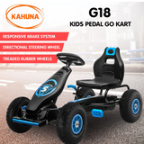 The package contains one pedal go-kart and an instruction manual to assist with setup. With dimensions of 1210mm x 610mm x 630mm, the Kahuna G18 is ready to provide hours of fun and excitement.