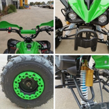 Its wide frame, knobby tyres and heavy-duty shocks allow the quad to stay stable on dirt tracks, farm paths and uneven ground under responsible supervision. With twin racing mufflers, dress-up wheel covers, LED headlights and a tough steel construction, this quad looks and feels like a mini performance machine.