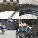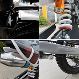 Equipped with a robust 125cc engine and a 4-speed manual transmission (1 down, 3 up), the MJM Dirt Bike ensures optimal control and acceleration on various terrains. Its USD forks and spring rear shock absorber provide smooth handling and comfort, absorbing bumps for a stable ride.