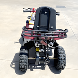 With dual suspension, heavy-duty knobby tyres and a tough powder-coated steel frame, this quad is made for real outdoor fun. The rear utility rack adds practical farm-style versatility, perfect for carrying small items and making every ride feel like a mini adventure.