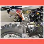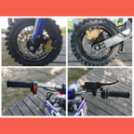 Built with upside-down front forks, a heavy-duty rear shock and chunky knobby tyres, this bike is made for real outdoor terrain. Its tough steel frame, hydraulic disc brakes and chrome performance exhaust give it the strength, stability and style needed for backyard adventures, dirt tracks and off-road fun.